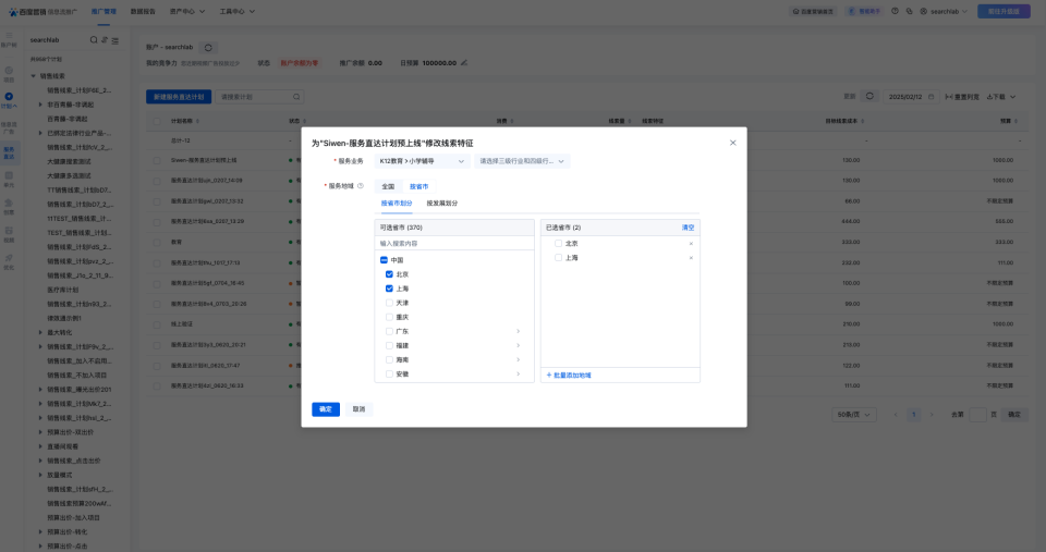 1.升级信息流服务直达计划的能力,增加线索时段设置。即在您未选时段内所收集的线索,即使与您服务匹配、符合您的成本要求,系统也不会为您竞价购买。