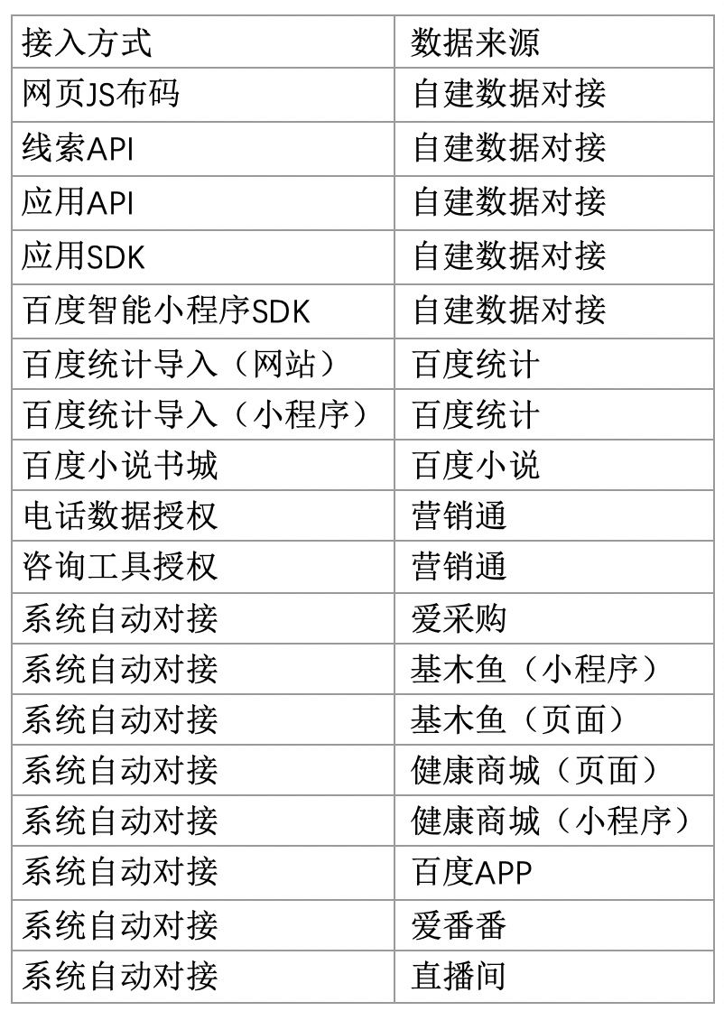 - 接入方式:客户与百度的转化数据接入方式